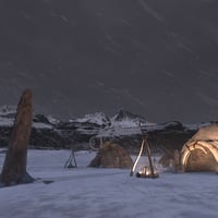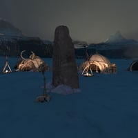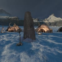 The settlement included in the product is organized in communal huts with a framework made mostly of wood logs and mammoth bones to strengthen the structure, and other multi-purpose huts and structures, several fire pits, docks used to tan leather and fur, and several other assets.
