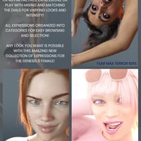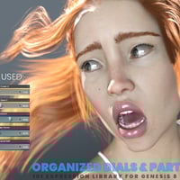 101 Expression Library with Dials for Genesis 8 Female is THE expression collection you'll come back to again and again for your artwork! It's COMPLETELY organized, color coded, separated into folders, and has everything you need to get your Genesis 8 Female's facial expression looking PERFECT for you!