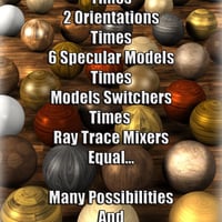 The 6 specular models include : 3Delight, Blinn, Phong, DS Default, DS advanced, Rough models. The four first are great on any kind of surface. The two last presents are a complement to drive your highlights on either very curvy or very flat objects .