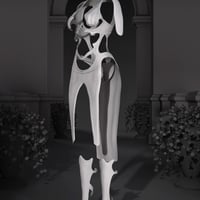 The outfit includes a dress (you can hide loins to turn it into a simple top), a panty, and shin-guards to round out the look.