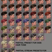 Antares Hair includes: 21 adjust, 13 movement, 23 styling, 11 volume and 16 windy morphs, 10 style presets, 36 normal material presets and 12 material presets with colored hair tips. Additionally, there are 36 partial material presets that affect half the top strands and 36 presets for the other half strands, allowing you to adjust the color of the hair to your liking and create unique combinations of colorful streaks.