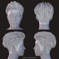 Antares Hair is a short trendy hairstyle that features a styled quiff on the top, adding volume and height to the head. The sides and back are kept shorter, creating a contrast between the textured top and the sleeker sides. This hairstyle complements youthful and charming characters, helping them stand out from the crowd.