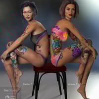 The Asian Skinworks Collection contains 48 L.I.E. presets that can be used for a wide array of Genesis 3 and 8 characters. The tattoos are customizable with the Layer Image Editor and can be applied at any areas of the skin as desired. Asian SkinWorks- bold and radiant colors to bring out the real essence of your renders! This is NOT a Merchant Resource. A PDF tutorial on how to use L.I.E. tattoos is included.