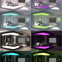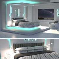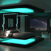 Bed Pod Future, is a cool, calm slick futuristic version of our beds. Neon glows and reflective colours, geometric shapes and simple lines. Not a hair out of place.