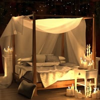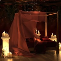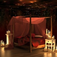 Bed Pod Romantic is a cozy, sexy pod. With a variety of sheet and pillow configurations in common romantic colours of whites and reds. Satin fabrics and shear fabrics. Candlelight and starlight mingle together to create and wonderfully sensual scene.