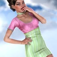 This blouse with frilly sleeves, a tight pencil skirt and a flirty scarf for Genesis 2 Female(s) is perfect for any render. Whether you're working at the office or picnicking at the park Bellissima will have you looking your best.