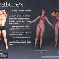 - On the fly conversion of Michael 4 and Victoria 4 poses to your Genesis 9 figure