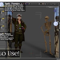 ** Any pose that sets the hip of the Bone Minion will be automatically converted on the fly and applied to the Genesis 9 figure. The Apply Changes script can be used to transfer any pose (including partial poses) on the Bone Minion to its target figure.