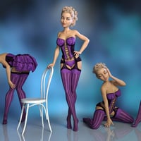 A set of fun burlesque style poses for The Girl 8 and Genesis 8 Female. Includes a beautiful bentwood chair with four lovely textures and a heart shape morph for the back. By parenting the chair to the hip of the figure, both are posed when using the included hierarchical chair poses.