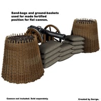 A figure and 12 props, set up for use with the Cannon Pack. Some of the props can also be used separately for your other battle purposes.