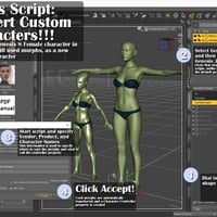 The Character Converter script is extremely simple to use. Just select the characters to convert and click execute! There is also a Convert Custom Character script which will copy a Genesis 8 Female character in the scene, with all currently used morphs and corrective morphs, to a Genesis 3 Female character (no character preset is created and no materials are copied).