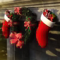 Hang your stocking(s) on the chimney, and hang the wreath on the door.