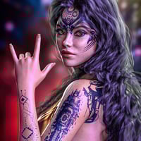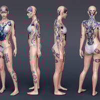 She has two skin texture sets, one with tattoos and one without. Left and right cheek emblem L.I.E's and a full set of makeup for both texture sets.