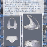 Following on from the previous tutorial, this set shows how to create a garment from scratch. You'll make a garment for the Genesis Female then go on to set it up for use in DAZ Studio 4. In over three hours of video tutorials you'll learn how to create a cool bikini with some neat details. As well as learning some neat tricks to get a good mesh with the proper polygon flow. In the modelling sections you will learn about:- Polygon Modelling;