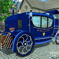 Coach Imperator is a limousine for your 3D steampunk world. This unique coach is a luxury sedan that can comfortably accommodate six passengers and has a cargo basket and steam engine. The driver's seat is located high in front, providing an excellent view of the road. The engine can be shut down to improve the look and muffle sound. The engine can also be animated. This is a very detailed model with a well-optimized low number of polygons. Also included are two driver poses for Michael 4 and Genesis. The kit comes with three color choices: red, black and blue. Explore!