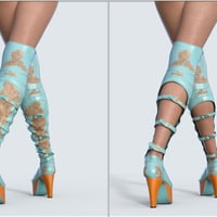 COG Jackboots for Genesis 8 Female are boots with two types of over-knee parts, morph for smoothing bootlegs, numerous morphs to adjust soles, heels and other parts of boots.