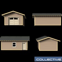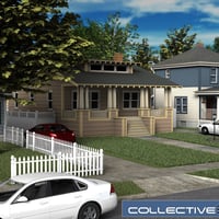The set includes the house (in two styles, with and without the faux dormer), matching one car garage, fence and gates, and the 50' by 150' lot with sidewalks, driveway, and road (and optional polygonal grass). It is designed to interconnect seamlessly with the other Modern Home Exterior sets, as well as the Collective3d Cape Cod Style Home, to quickly create gigantic neighborhoods.