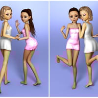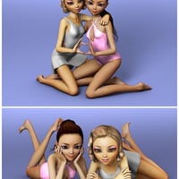 A set of 10 couple/group poses, composed of 24 individual poses, all with mirrors. The main set is made for Keiko 6, but an independent Genesis 2 Female version of the set is included, for use on other shapes.