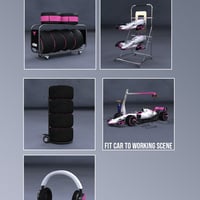 In this set, you will find almost all you need to create a realistic race car garage. There are environment presets and zero props, leaving the final configuration up to you.