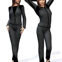 Cosmopolitan Girl is the woman about town. She wears a smart jacket over a loose blouse, and has sharply creased slacks. Her shoes are stylish, but simple, no nonsense pumps with a special auto-morph which matches the footforShoe morph in V4.