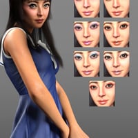 With customized skin settings and detail made just for her, she can fit any situation. Build her makeup from simple to complex with the overlays of eyeliners, contact lenses, and lip colors. She also comes with a floral torso tattoo, 2 eyelash materials, a lip stick geoshell to layer with her makeup lip tints, and detailed HD eye, nipple and navel shapes. And of course, anatomical elements are included.