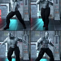 Set of strong heroic poses for Base Genesis 8 Male, Darius 8, Michael 8, and The Brute 8.