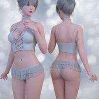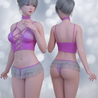 Perfectly crafted for Genesis 8 and 8.1 Female and Genesis 9 characters, this outfit is ideal for playful renders, themed scenes, or fashion-forward portraits.This outfit includes a ruffled skirt, panty, criss-cross top, and a neckband with 5 texture options.