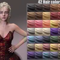 42 commonly used hair colors, including several gradient highlight shades to enhance character customization and variety.