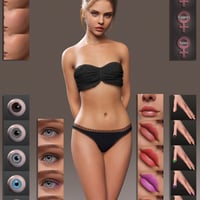 She is equipped with a separate 8k high-definition normal map, five colors of eyes, two colors of powder blusher, three colors of lipstick, three colors of eye shadow, a lip gloss and anatomical elements of female normal map texture.