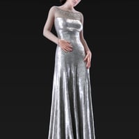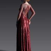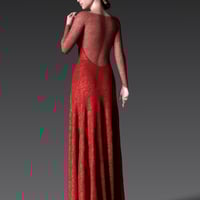 A long flowing gown in an A-ine silhouette that transforms into three gorgeous dresses; a delicate Brocade satin and lace evening gown, a dreamy brocade and sheer lace with embroidery detailed gown or a fantasy of emroidered netting lace over shimmering Taffet gown. All three in various colours.