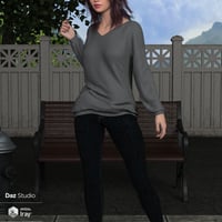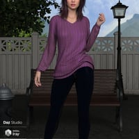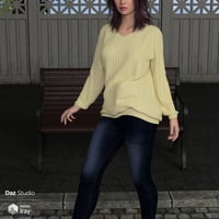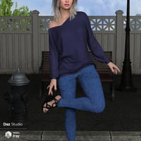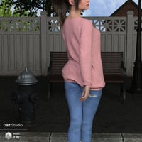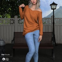 Nora Outfit consists of a dForce baggy sweater and conforming jeans. The sweater can be used as conforming in gentle poses. Before simulation, please use the Simulation Settings preset.