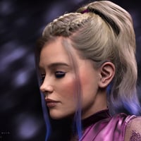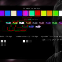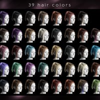 This hairstyle comes with 34 Omni Hair Shader material presets for the hair, 5 blend options,12 bang tip color options, 3 translucency settings,6 gloss settings, settings to shut off tail noise, options to reduce weight, 12 hair tie colors, and a 2 page instruction pdf.