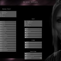 Use the hair as-is with the abundance of included morphs, or combine dynamics and drape your hair to your pose. Also included are 18 shaping morphs for the hair,4 morphs for the cap,6 morphs for the tail, and 4 morphs for the hair tie.