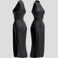 This high neck midi dress features lace details with revealing side cuts