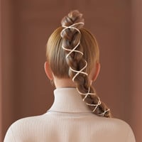 Command elegance and presence with the Diamond Spine Braid Hair — a bold, refined hairstyle that blends structure with luxurious detail. This sculpted ponytail braid is wrapped in silver and diamond-like chain accents, while delicate pearls trace the hairline, adding a graceful shimmer and visual intrigue.