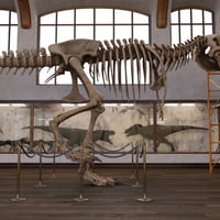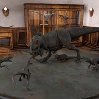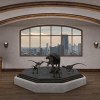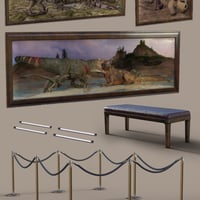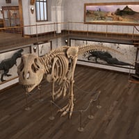 Dinosaur Exhibition Gallery comes with a Tyrannosaur Skeleton fully rigged and animated as well as an environment with furniture and props.