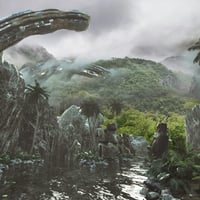 The set contains mountains, boulders, river mixed with ancient monuments and modern structures.