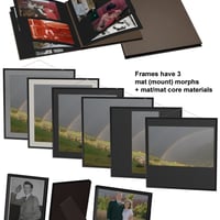 Photo frames are always useful, and they're also a great way to personalize your scenes! Appear in them yourself, or use photos of your family or pets! This pack has a large selection of different frames, plus templates to use your own images. It includes 22 different Photo Frames (wall or stand), 10 Art Frames and 10 Mirrors. Most of the frames have morphing mats (photo mounts), allowing you to crop the image area for different formats. Also included is a 20-page photo album (with turning/bending pages) to make up your own wedding album or book of family snapshots.