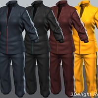 This Training Wear outfit set for Genesis 3 Female(s) consists of Jacket, Pants, Tank Top, Bloomer and Shoes. Also included are 4 color options for each piece.