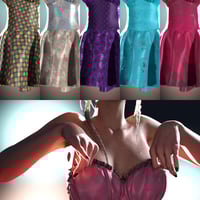 The Extra Textures for Ruffled Party Dress includes fifteen unique material presets, adding various designs to the already versatile dress.
