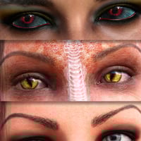 The EYEdeas 5 Extended introduces a big collection of iris, sclera, eyesocket, lash and brow texture options for Victoria 8's fibermesh brows - plus iris, pupil and morphs for Victoria 8's fibermesh brows. Morphs can be mixed and combined to your liking. All the pupil morphs are provided as options for left or right eye only - or for both eyes at once.