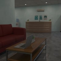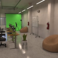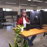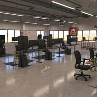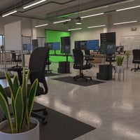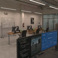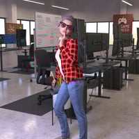 This is an office-style environment with useful poses and a hacker-style outfit.