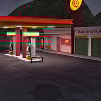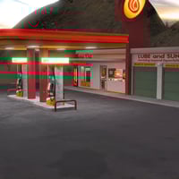 Experience the wonder of being in the remote desert, with this very secluded gas station set.