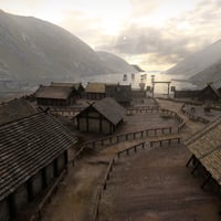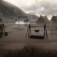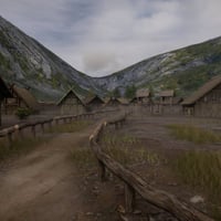 A huge village with volume clouds. Lots of props in the add on, usable long house that includes low and high poly houses, poses and outfit. The village is low poly in the distance and high res in the center of the village and inside the long house.