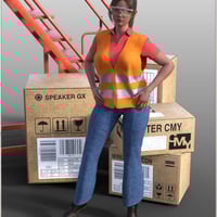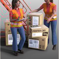 A set of detailed poses for FG Packaging Warehouse adjusted for Genesis 9 feminine with 20 anywhere and go-to poses.