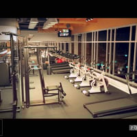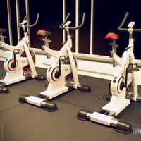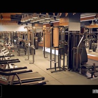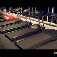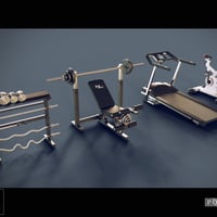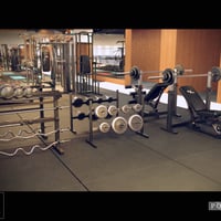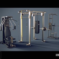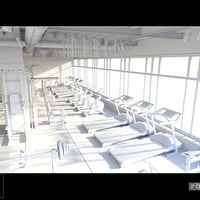 A Realistic fitness club interior scene including 7 exercise machines, Iray lights ready for render and other props.