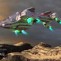 Flyers Eagle - flying machine designed to carry cargo and team of 12 people. Flying machine can fly in space and landing on planet earth class with hard soil. This device can be equipped with devices in a civil variant and weapons in the military version. The kit includes two color options: white and gray, and two pilots pose for figures: Genesis and Michael 4. Explore!