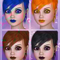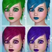 Meet Poppy a super cute colourful toon character for V4/A4. She comes with eight eye/makeup options, all applied individually so you can mix and match as you like. As an added bonus there are also eight matching hair textures for the V4A4 Bun hair included. Have fun!
