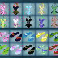 A cute and stylish swimsuit with flipflops that fits realistic and stylized figures.