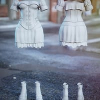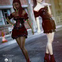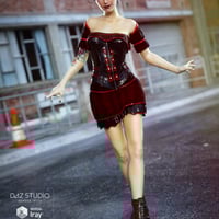 This installment includes the Under-bust Corset and Gothic Punk Platform Boots to complete a one stop, old-school, new-school, any-school goth-girl showpiece, all decked out in malevolently chic Iray material settings.